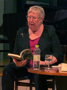 Jeg kommer aldrig til at se så elegant ud som Olga, når jeg læser – selv ikke med publikum. (Foto: P.E. Nikander Frandsen)