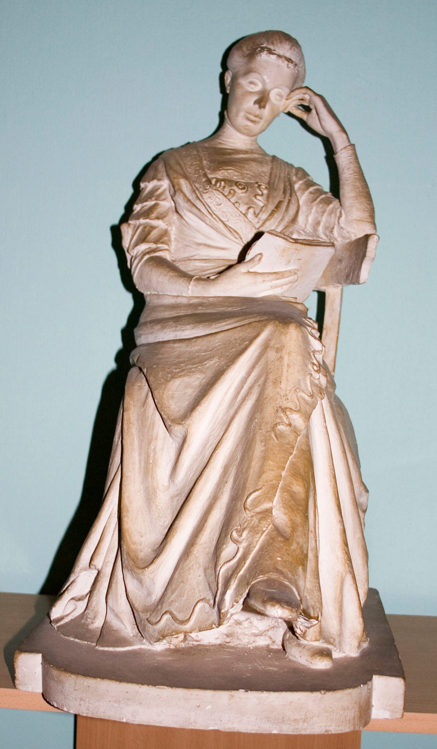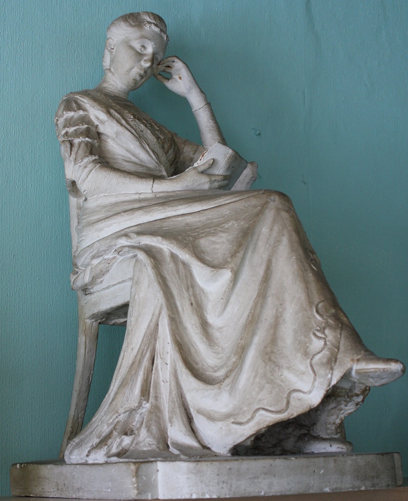 Olga læser. Skulptur af (hendes mand) Rasmus Bøgebjerg. (mit foto)